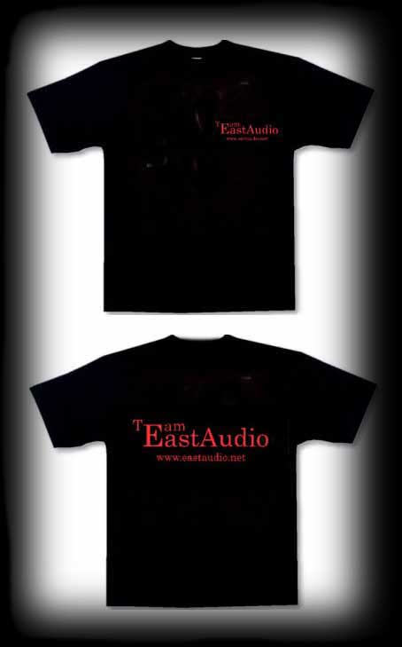 Team EastAudio -paita. Koot S, M, L, XL ja XXL, hinta 15 Euroa. Laadukas T-paita, jossa