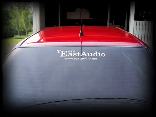 Team EastAudio -takalasitarra. Laadukas peilipintainen tarra takaikkunaan, tarran leveys noin 34 cm. Hinta 10 Euroa/kpl