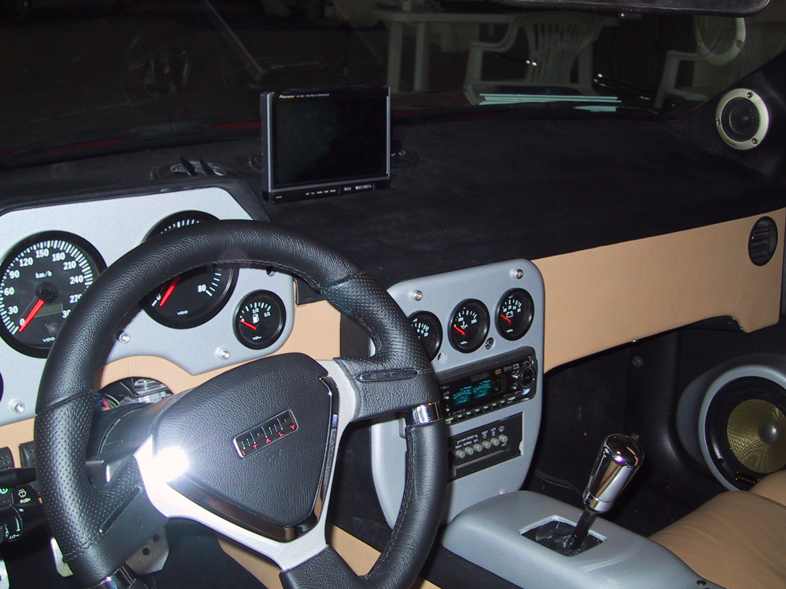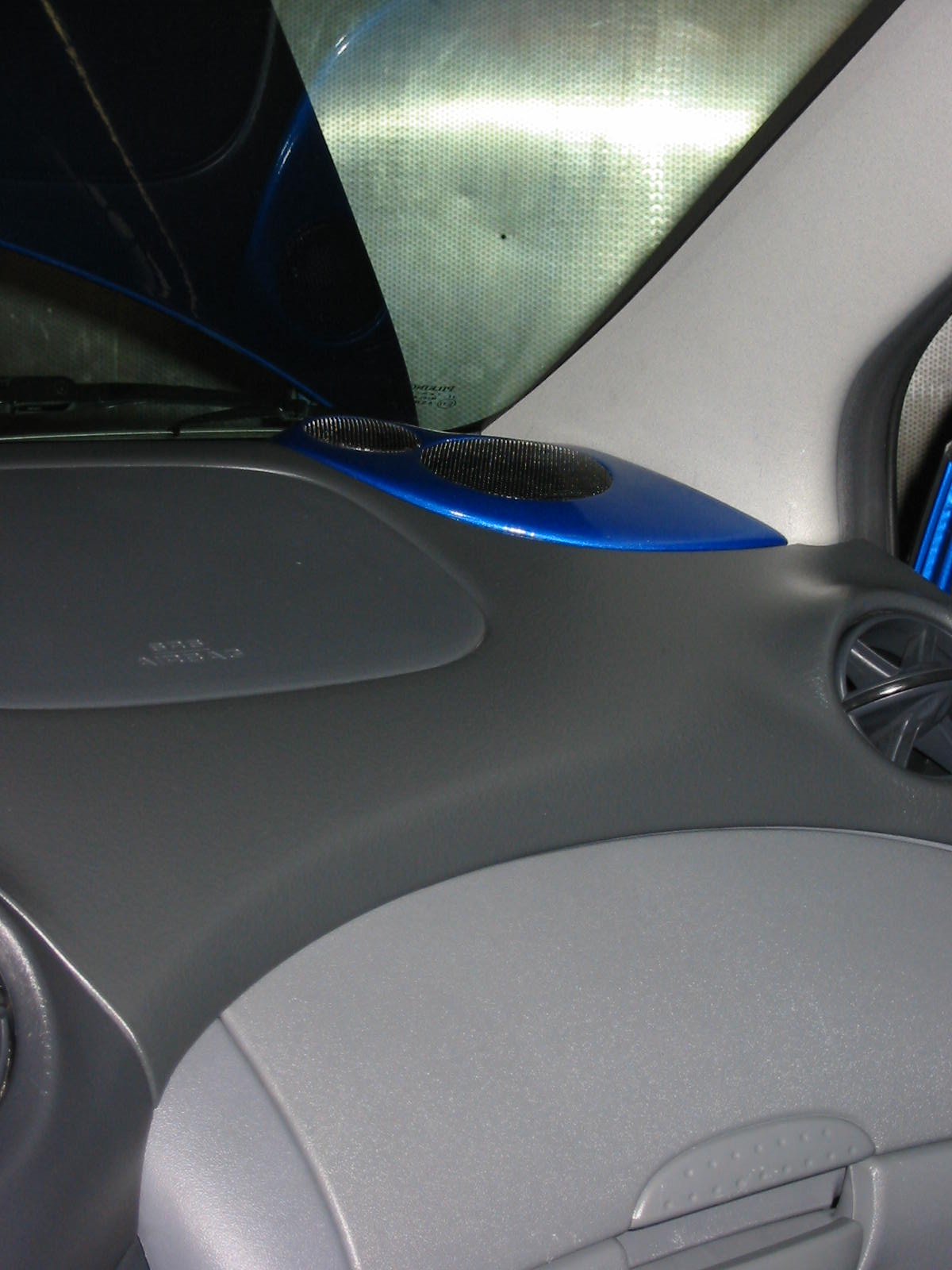 Yläpään kaiutinsijoitteelu ideaalinen, mittaristo ei tee heijastumia. Sininen väri tekee kivan kontrastin.