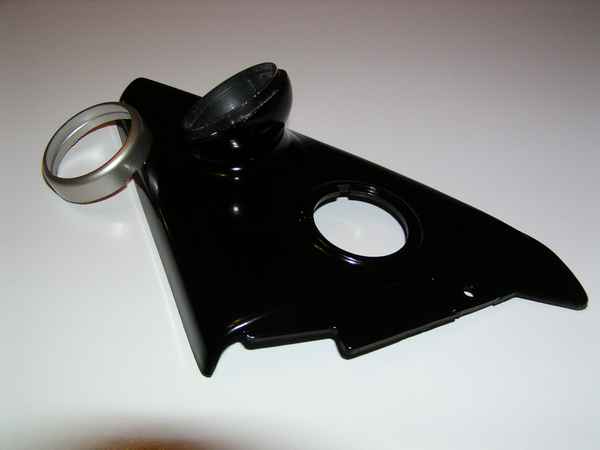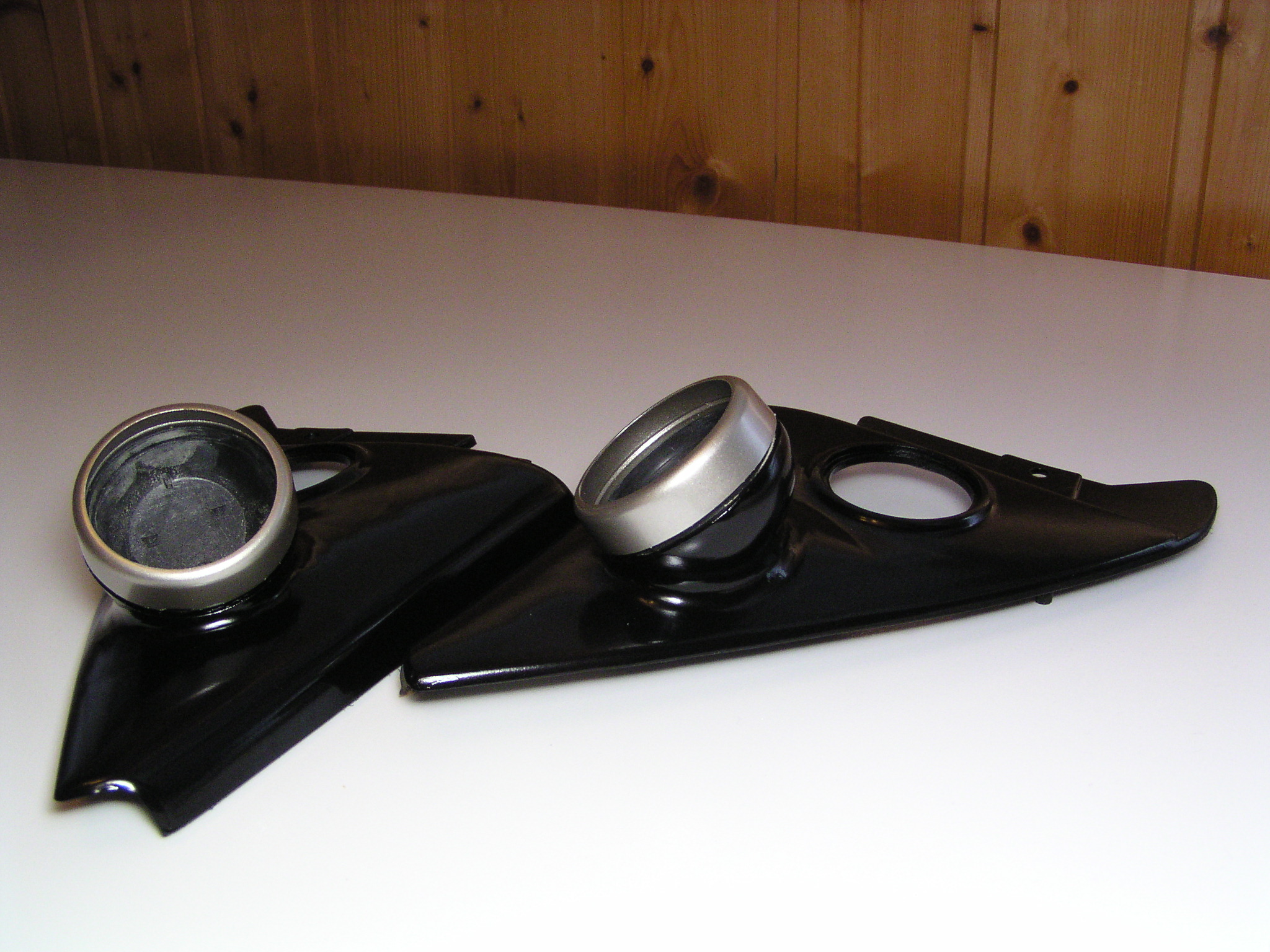 Aloitetaan diskantin asennus peilikolmion. Ensiksi alkuperäinen asennuspanta/pulikka kiinni.