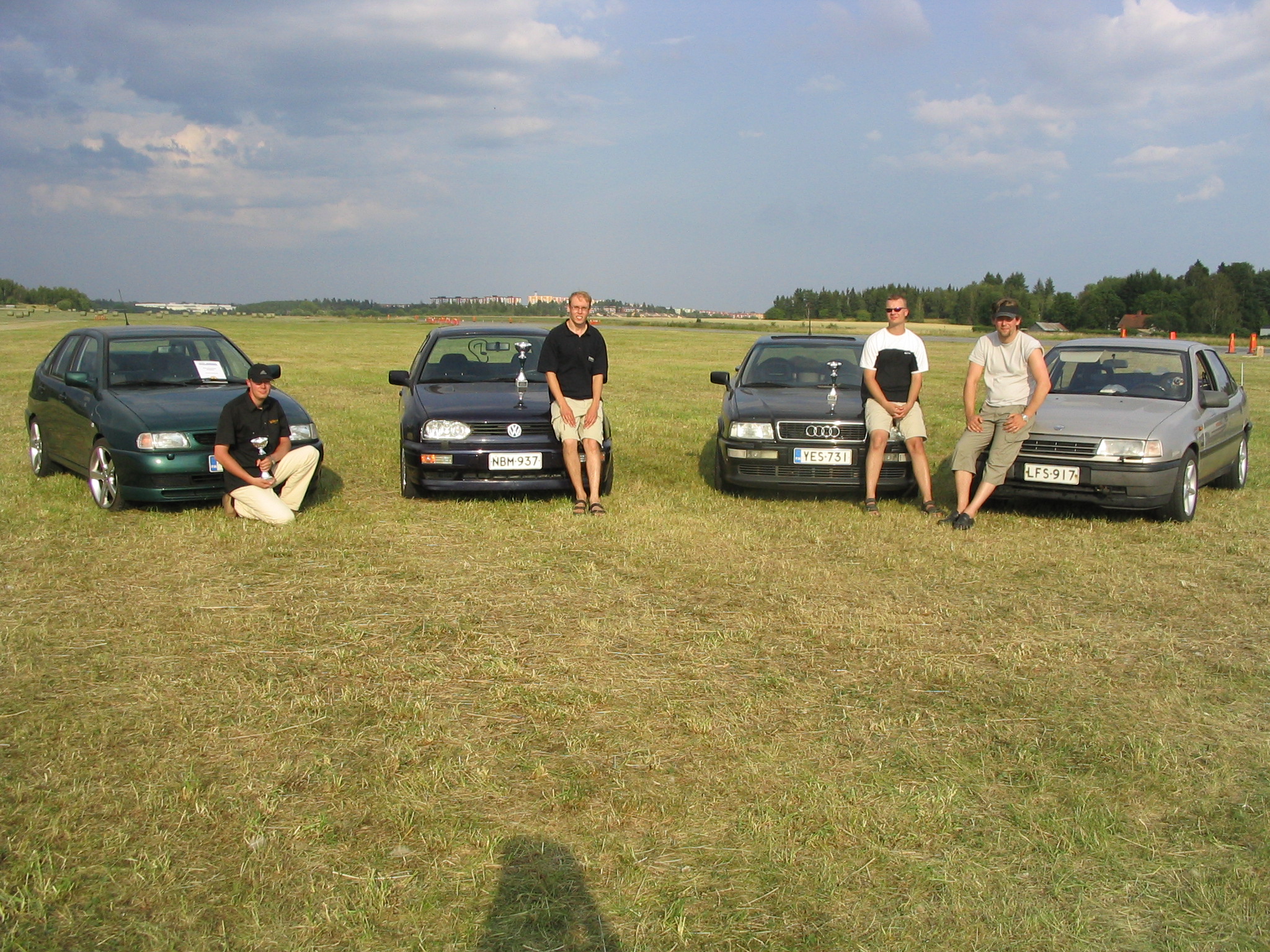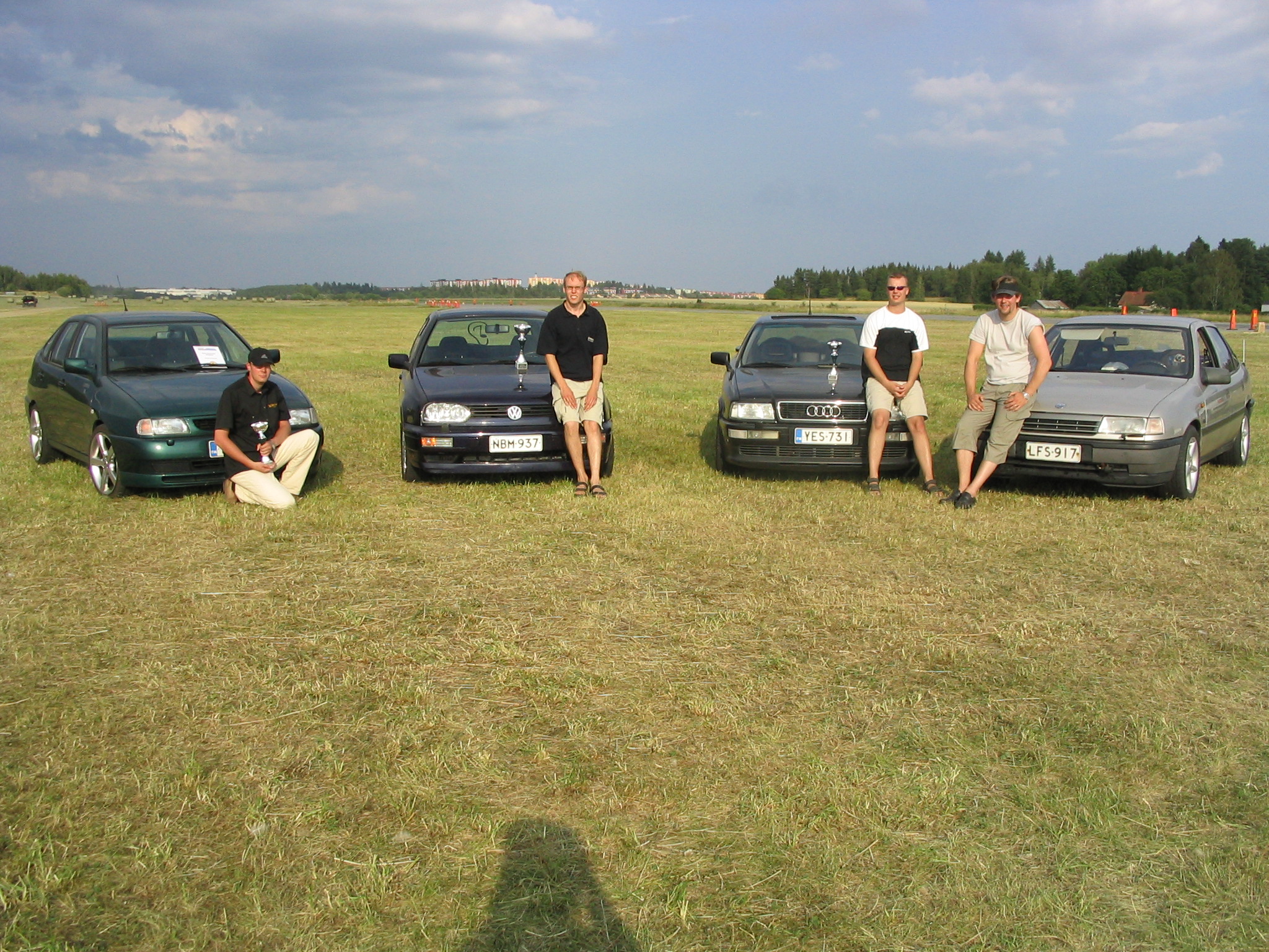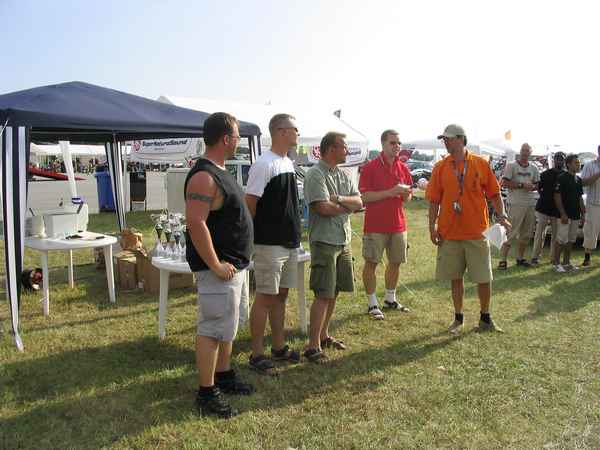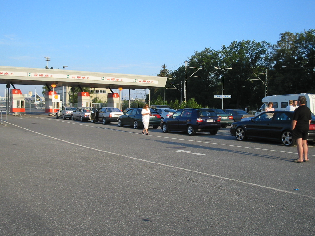 7.8.04. La: Pysähdyin aamulla kahville piristääkseni itseäni Tampereen huoltoasemalla. Siitä jatkoimme matkaa kohti Turkua. Turussa tapasin myös muut kilpailuun lähtijät eli: Mikan & Sallan, Pasin & Pirkon, ja Mikon & Fian. Siitä klo. 8.00 aikoihin ajoimme laivaan. Piakkoin oli päästy laivan hyttiin käväisemään. Kari kävi Tax Freestä noutamassa murre-lavan joka juotiin hyvillä mielin parempiin suihin. Matkaväsymyksen takia lepäilimme muutaman tunnin. Ennen maihin nousua käväistiin laivan yläkannella ihailemassa hulppeita maisemia. Laivasta lähtö pois oli siinä ilta seitsemän aikoihin. Maihin noustua Tukholmassa ajelimme hotellille Scandic Brommaan. Ajatuksena oli vielä käydä kilpailupaikalla tutustumassa etukäteen siihen ennen varsinaista kilpailua, joten niin tehtiin. Yllätyksekseni huomasin Sasca:n porukan ottavan meidät erittäin hyvin vastaan. He tarjosivat illalla pientä purtavaa ja nestemäistä oman valinnan mukaan. Ilta meni rattoisasti porukoitten kanssa turinoidessa ja seurueen naiset saivat jopa ilmaisliput huomiseen tapahtumaan, josta kuuluu suuri kiitos Sasca:n henkilöstölle. Ilta piti lopettaa noin puolen yön maissa ja suuntasimme hotellille suunnittelemaan huomista koitosta.